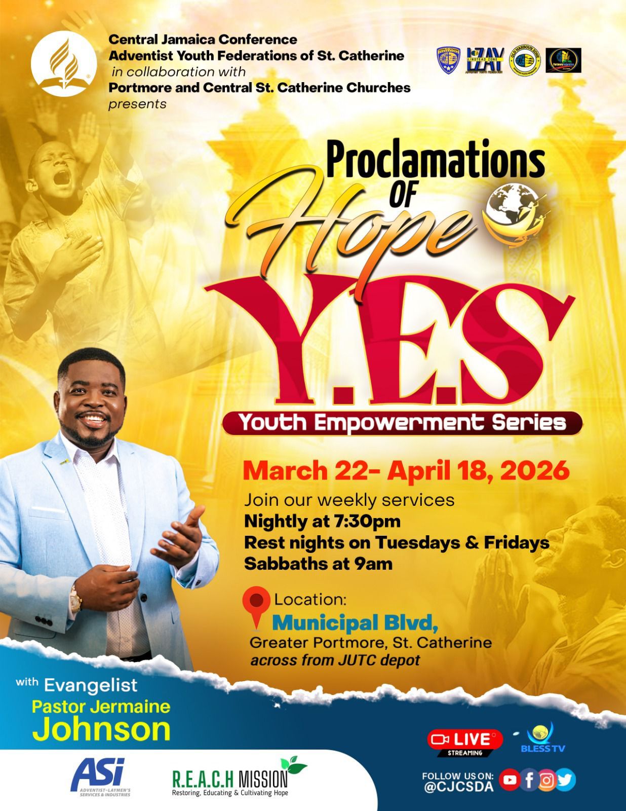 Welcome to the Central Jamaica Conference Youth Ministries Department webpage where we seek to prepare youth for service. I would like to express gratitude to all Pastors, Area Coordinators, Federation Executives, Adventist Youth Leaders, Pathfinder and Adventurer Directors for your willing and gallant efforts to advance the mission amidst great challenges. Undoubtedly, the Lord will bless and affirm our tremendous labour as we go forward in his name.